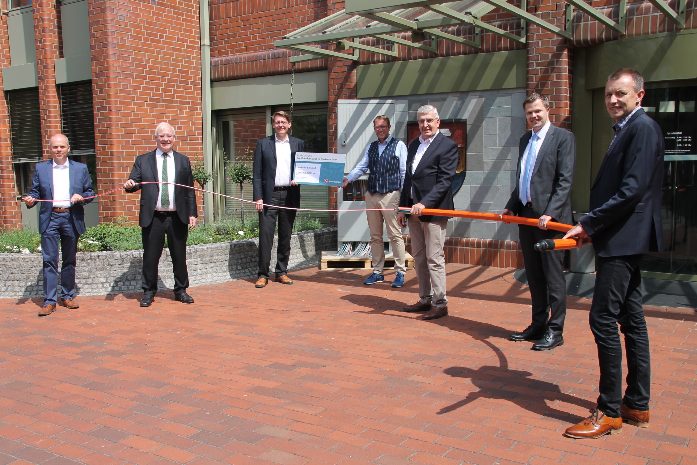 Staatssekretär Stefan Muhle hat heute im Meppener Kreishaus Förderbescheide über 2,2 Millionen Euro für den Breitbandausbau an den emsländischen Landrat Marc-André Burgdorf übergeben. Insgesamt sind acht Anträge auf Förderung des Breitbands aus dem Emsland bewilligt worden. Landesweit sind 95 Anträge auf Förderung des Breitbandausbaus bei Land Niedersachsen eingegangen. Das Fördervolumen umfasst rund 115 Millionen Euro. Mit der Ausbauoffensive wolle man erreichen, dass alle Niedersachsen die bestmögliche digitale Infrastruktur bekommen, so Muhle. Gewerbegebiete, Schulen und Krankenhäuser stünden dabei besonders im Fokus. Im Emsland können nun fast 1.400 Adressen in noch unterversorgten Gewerbegebieten ebenso wie sechs Krankenhäuser und Schulen an das schnelle Internet angebunden werden.