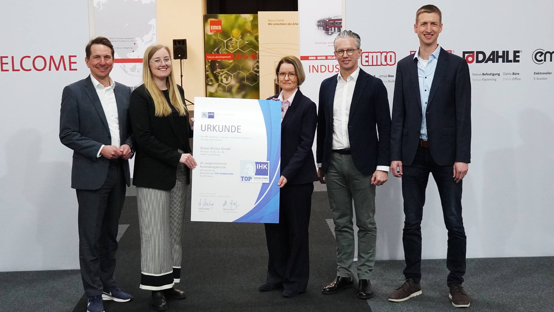 Das Unternehmen Erwin Müller GmbH hat zum dritten Mal das IHK-Siegel “Top-Ausbildung” erhalten. Das teilt die Industrie- und Handelskammer Osnabrück – Emsland – Grafschaft Bentheim mit. Das Unternehmen setzte auf eine gute Zusammenarbeit mit allgemeinbildenden Schulen in der Phase der Berufsorientierung. Außerdem schaffe es durch den klar geregelten Übernahmeprozess frühzeitig Perspektiven und Planungssicherheit. Insgesamt wurden bislang 77 der insgesamt rund 2.500 IHK-Ausbildungsbetriebe in der Wirtschaftsregion Osnabrück-Emsland-Grafschaft Bentheim mit dem IHK-Qualitätssiegel ausgezeichnet.