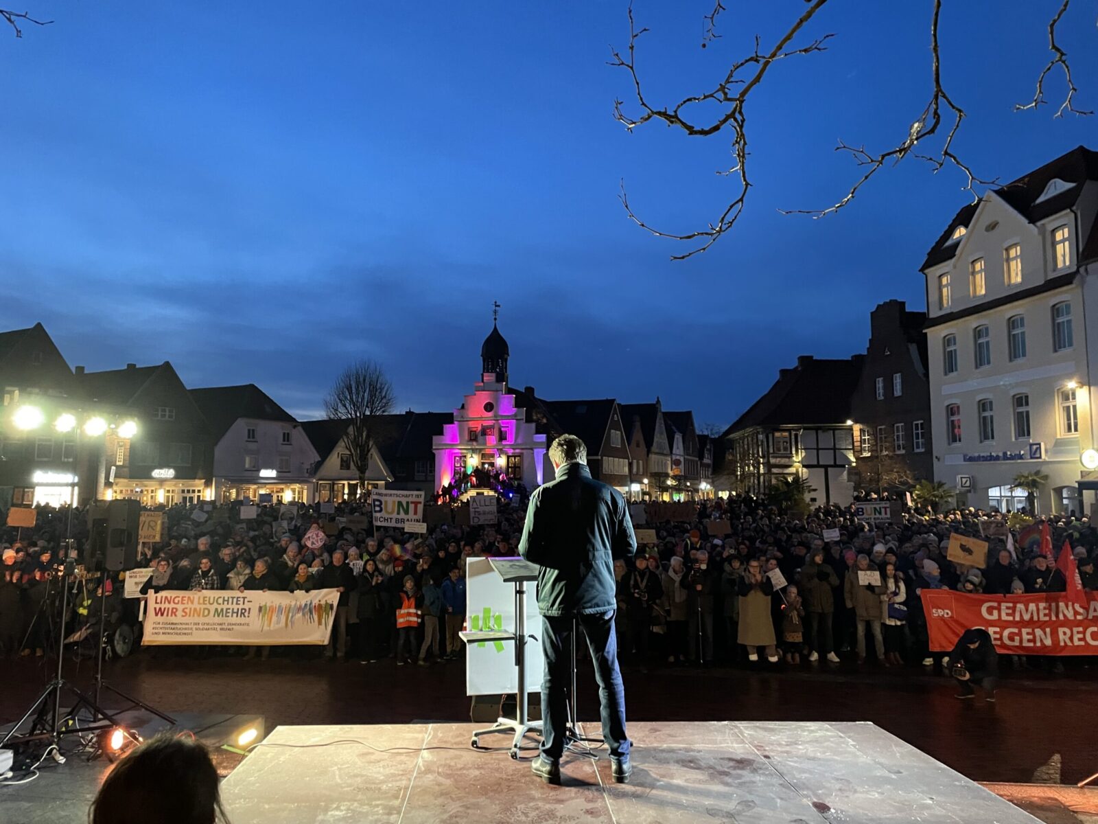 In Lingen ruft die Initiative „Lingen ist bunt“ zu einer Demonstration für Respekt, Vielfalt und Demokratie auf. Die Kundgebung soll am Mittwoch, den 5. Februar, um 18:30 Uhr auf dem Vorplatz des Lookentors stattfinden. Ziel ist es, kurz vor der Bundestagswahl ein Zeichen gegen rechte Parolen und Angstmacherei zu setzen. Geplant sind Redebeiträge aus der Zivilgesellschaft, die dazu aufrufen, sich aktiv für eine offene und solidarische Gesellschaft einzusetzen. Die Liste der Rednerinnen und Redner wird derzeit noch zusammengestellt.