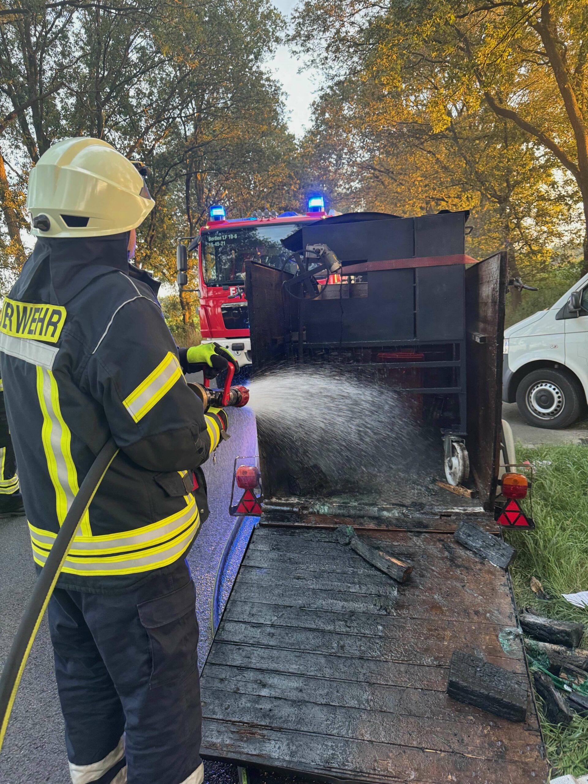 Am Freitagabend ist in Klein Berßen ein Spanferkel-Drehspieß auf einem Auto-Anhänger während der Fahrt in Brand geraten. Wie die Feuerwehr Sögel mitteilt, war der Eigentümer auf der Sögeler Straße unterwegs. Es gelang ihm, den Anhänger vom Auto abzukoppeln. Die Freiwillige Feuerwehr Berßen konnte das Feuer rechtzeitig löschen, sodass sich der Sachschaden in Grenzen hielt. Die Feuerwehr war mit 14 Einsatzkräften und drei Fahrzeugen vor Ort.