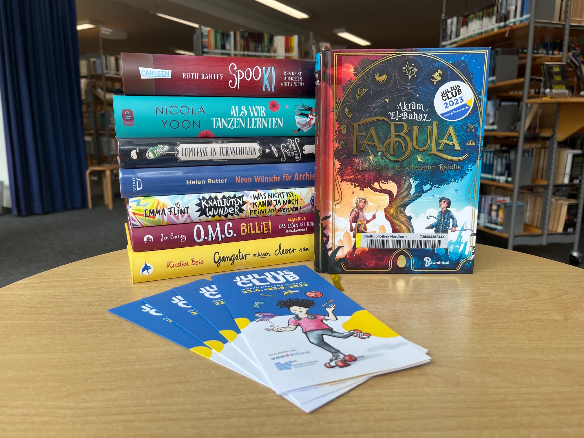 Das Sommerleseprogramm der Bibliotheken in Niedersachsen ist besser bekannt unter dem Namen Julius-Club. Als Mitglied im Club hat man die Wahl, unter 100 Büchern diejenigen zu finden, die man im Sommer gerne lesen möchte. Um die Wahl etwas zu erleichtern, stellt Amelie Büscher von der Stadtbibliothek Nordhorn jeden Dienstag zwei Bücher vor. Diesmal geht es um fantastische Wälder und Bäume: