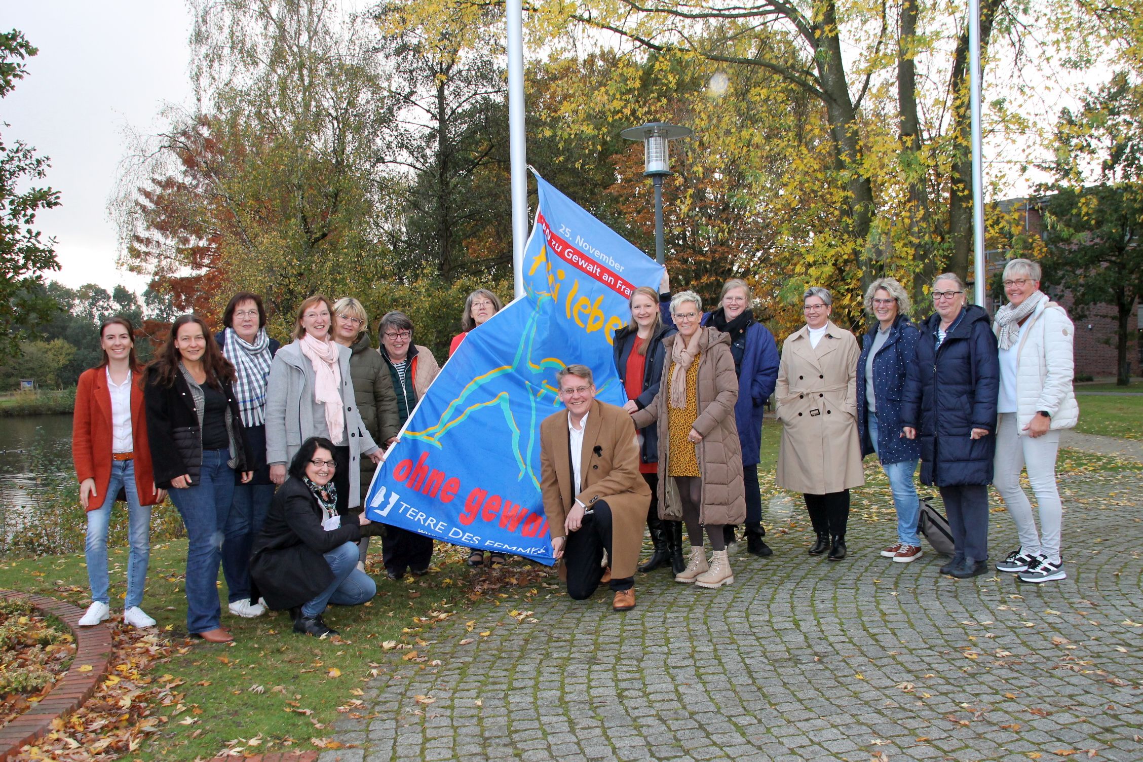 Um ein Zeichen gegen Gewalt an Frauen zu setzen, weht ab Samstag vor dem Meppener Kreishaus eine Fahne des Vereins „Terre des Femmes“. Der Verein kämpft gegen Menschenrechtsverletzungen an Mädchen und Frauen. Samstag wird weltweit der Internationale Gedenk- und Aktionstag „NEIN zu Gewalt an Frauen!“ begangen. Der Tag steht in diesem Jahr unter dem Titel #StellDichNichtSoAn – steh auf gegen sexualisierte Gewalt an Frauen!“. Dieser Schwerpunkt verdeutliche, dass sexualisierte Gewalt im Arbeitsleben, auf Konzerten, im öffentlichen Raum oder den eigenen vier Wänden passiere und viele Frauen im Stillen leiden, um nicht wieder hören zu müssen, dass sie sich nicht so anstellen sollen, so der emsländische Landrat Marc-André Burgdorf. Im gesamten Emsland sind in diesen Tagen kreisweit Veranstaltungen und Aktionen geplant. Es sei wichtig, auf dieses wichtige Thema hinzuweisen und Unterstützungsangebote bekannter zu machen, so Burgdorf weiter.