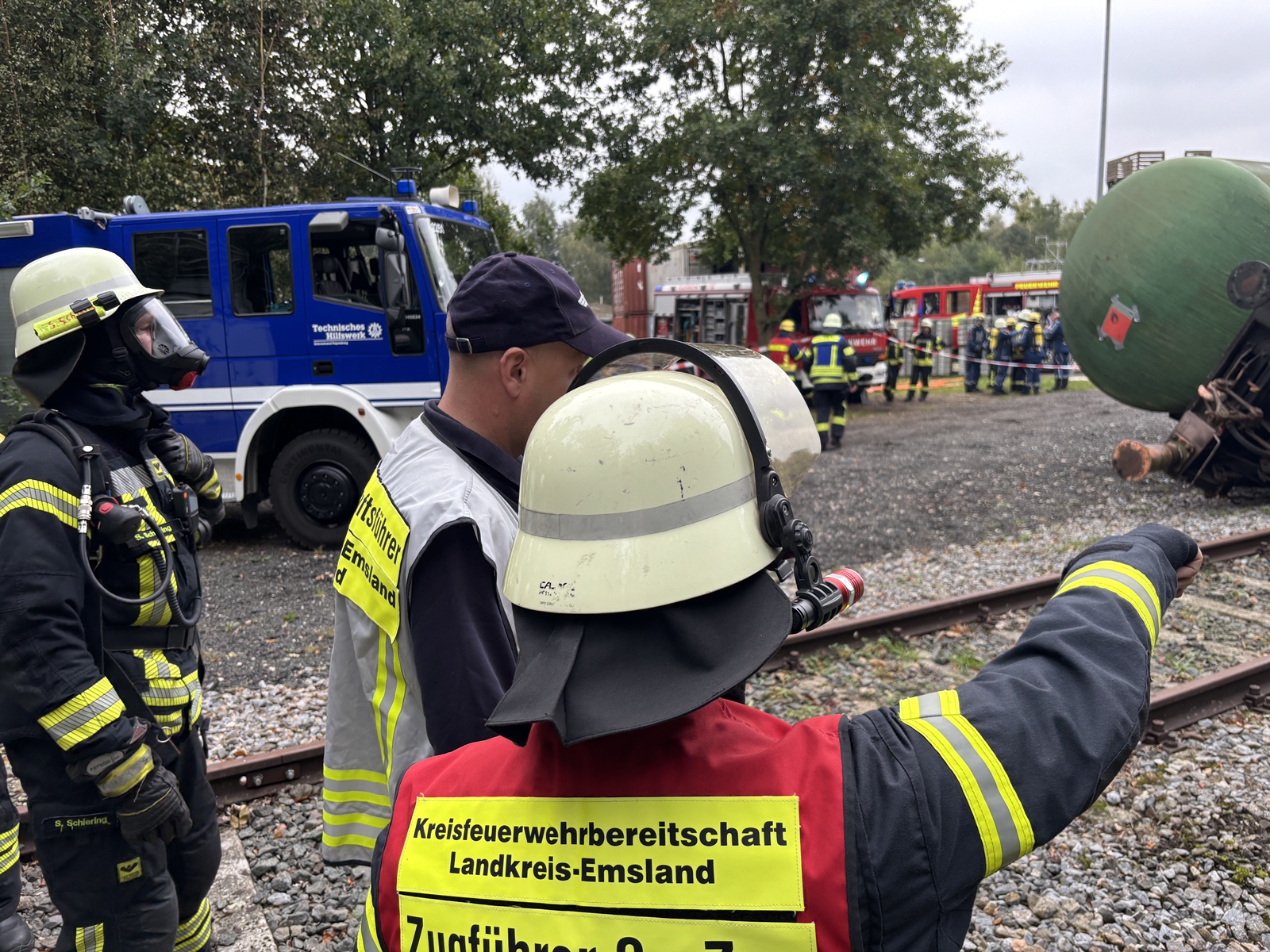 Kreisfeuerwehrbereitschaft Emsland Nord probt in Nordhorn Lage nach Zusammenstoß von Kampfjets