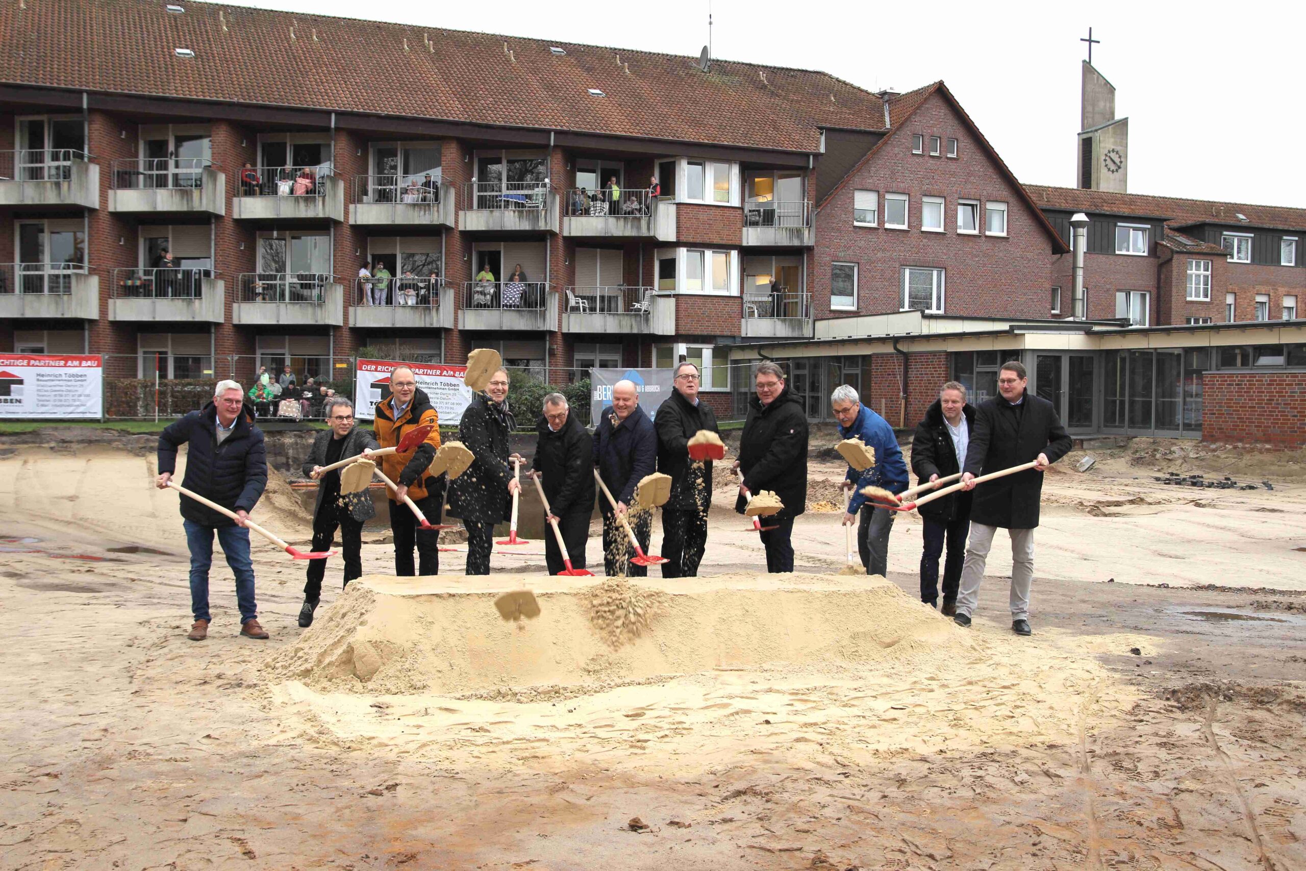 Der Neubau des St. Johannesstift in Spelle hat offiziell begonnen. Die neue Senioreneinrichtung soll Platz für 72 Bewohner bieten. Die Kosten belaufen sich auf 15,5 Millionen Euro. Neben der Kirchengemeinde St. Johannes beteiligen sich das Bistum Osnabrück, die Gemeinde Spelle und der Landkreis Emsland an der Finanzierung. Der erste Bauabschnitt soll im Herbst 2025 abgeschlossen sein. Ein zweiter Bauabschnitt soll 2027 abgeschlossen werden.