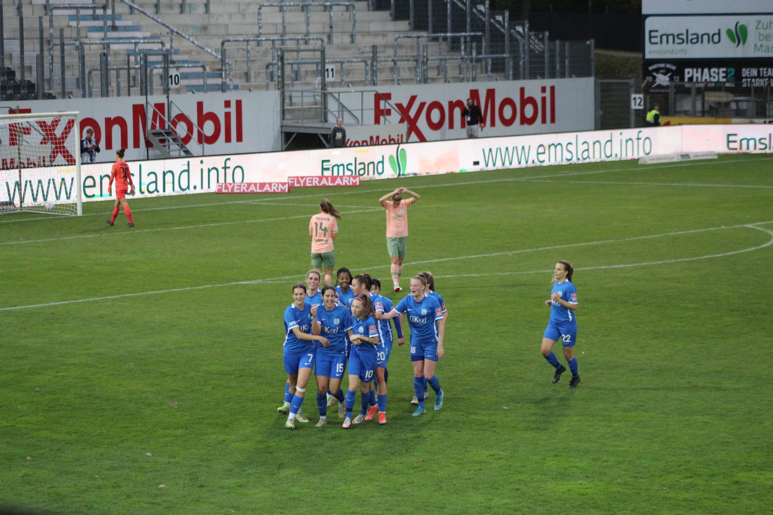 Die Damen des SV Meppen haben heute in der Fußball-Bundesliga der Frauen mit 2:0 gegen den SV Werder Bremen gewonnen. Vor heimischer Kulisse gingen die Meppenerinnen in der 24. Minute durch ein Tor von Lisa Josten in Führung. Anna Margraf konnte bereits in 37. Minute zum 2:0 erhöhen. Nur wenig später hätten die Meppenerinnen durch einen Elfmeter auf 3:0 erhöhen können, scheiterten aber an Bremens Keeperin Anneke Borbe. Für die Meppenerinnen geht es in zwei Wochen weiter. Im DFB-Pokal treffen sie dann auswärts auf den SC Freiburg.